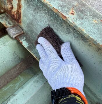 鉄部を研磨し、凹凸や錆・汚れをなくすことにより塗装の密着や仕上がりがよくなります。
